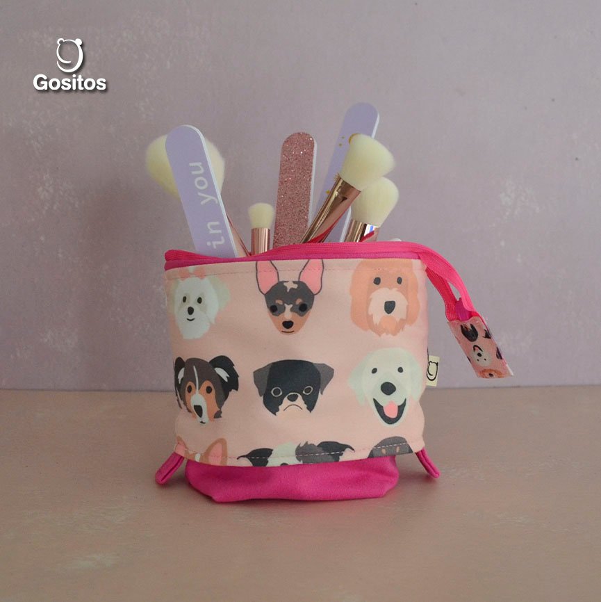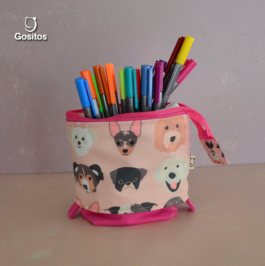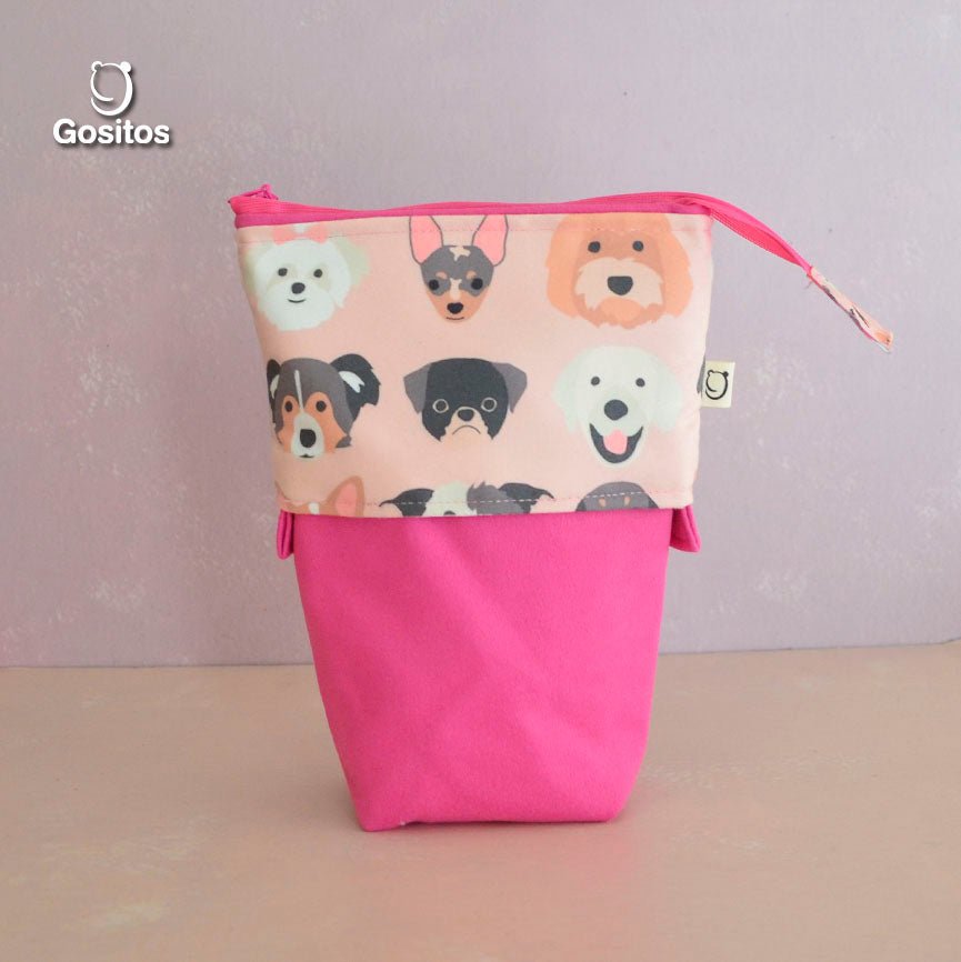 Estuche Vertical Retráctil Fucsia Perritos
